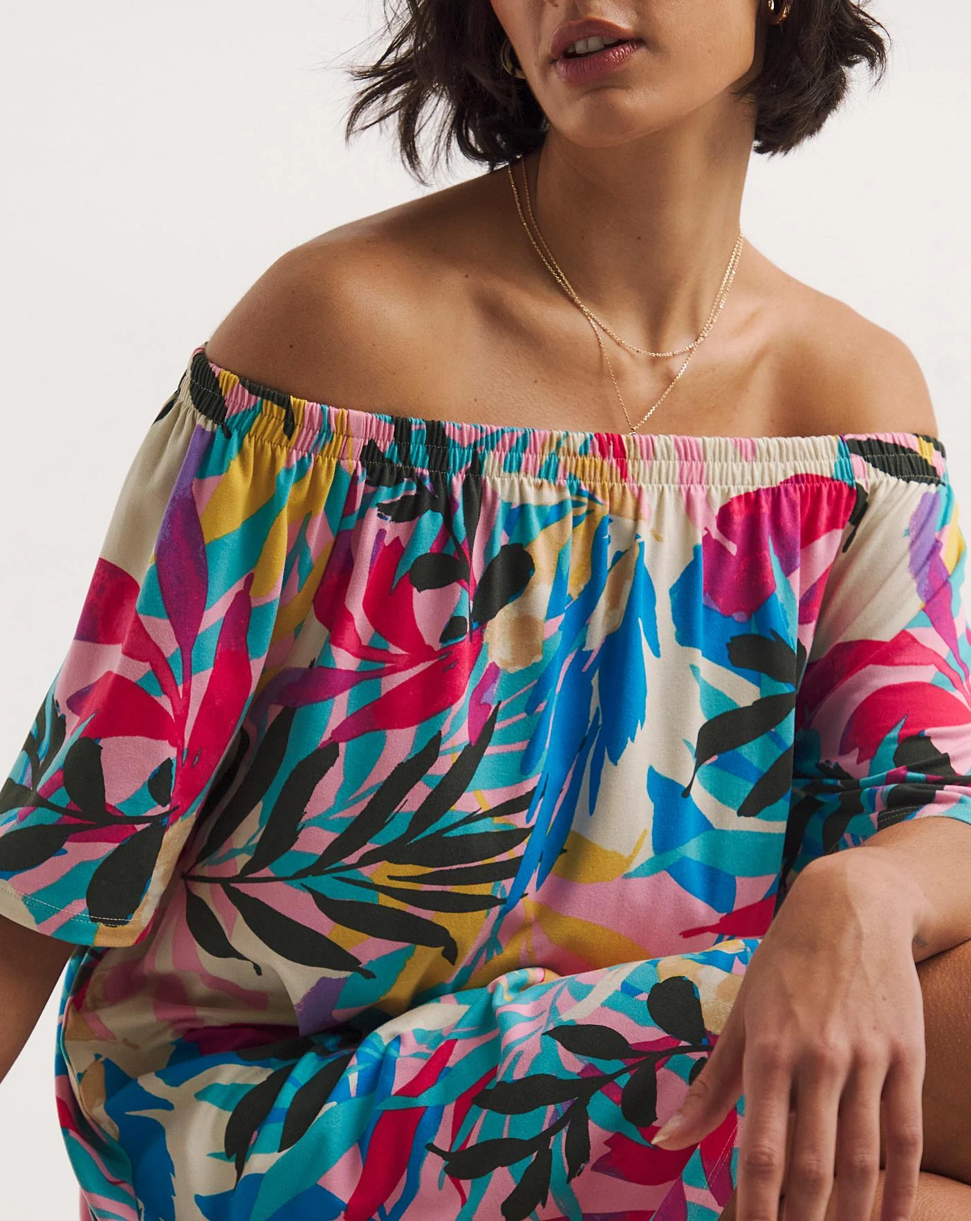 The perfect pair! These pretty two pack bardot dresses are perfect for holiday and sunshine. Featuring an off the shoulder look, short sleeves and relaxed, full hem. Proving comfort and style.