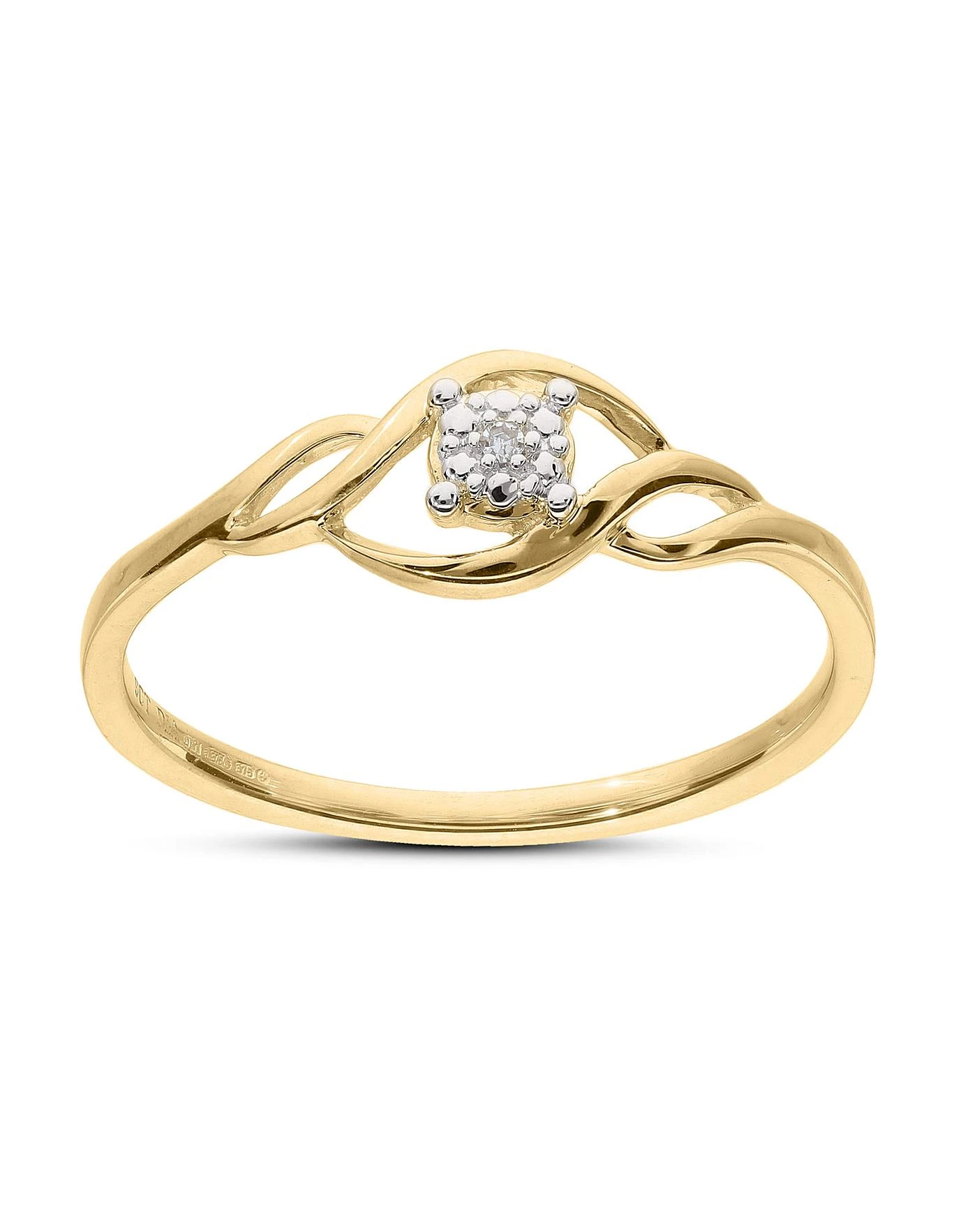 - With A Simple Design Crafted out of 9 Carat Gold This Pretty Dress Ring Has A Diamond Set In A Dainty Swirl Design
