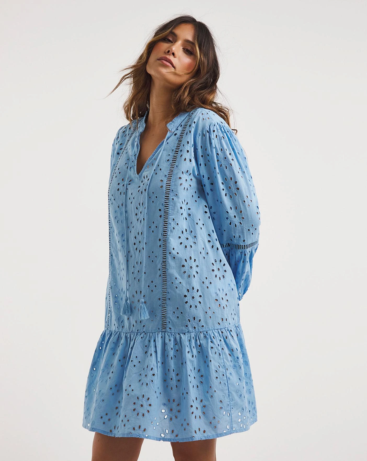 This mini beach dress from our Anise collection will make you feel fabulous this season! This dress features ladder detail, perfect to wear over your swimwear!