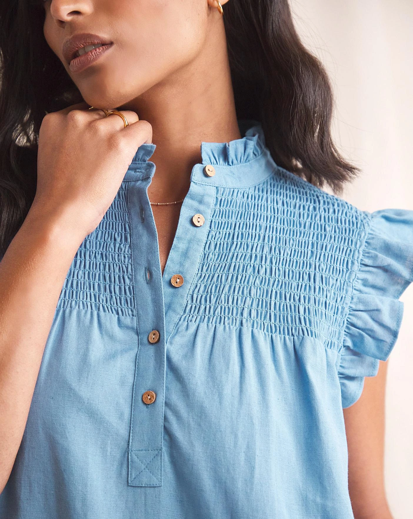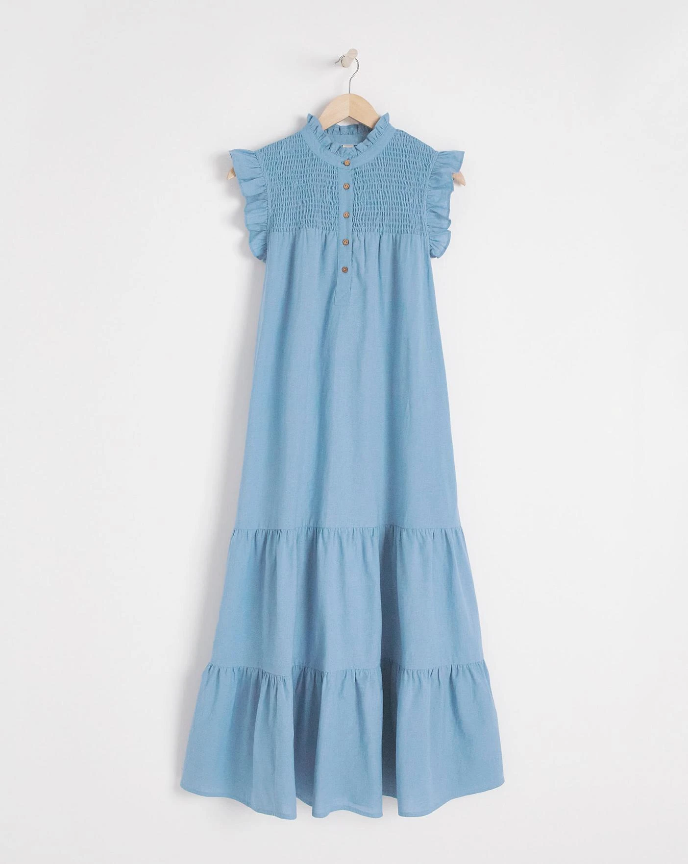Discover your new wardrobe hero in our Savannah linen midi dress. With her multi-tiered silhouette, shirred yoke and coconut button detail, she’s the form-flattering style you’ll wear on rotation. We’ve also added side pockets to finish the look. Wear with a straw sun hat and chunky sandals for warm weather days.