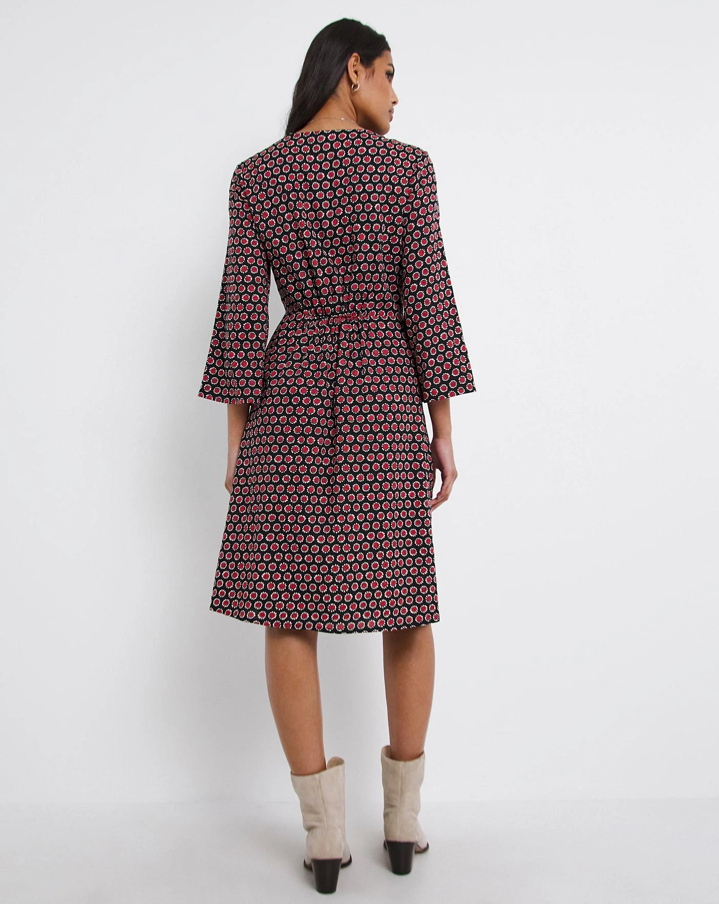 A truly versatile design that can be dressed up or down and worn for any occasion. Featuring a figure skimming A-line shape with flattering V-neck and three quarter flare sleeves. The neck has a multi-way tie which you can wear tied to the front or around your neck. Made from sustainably sourced Viscose.