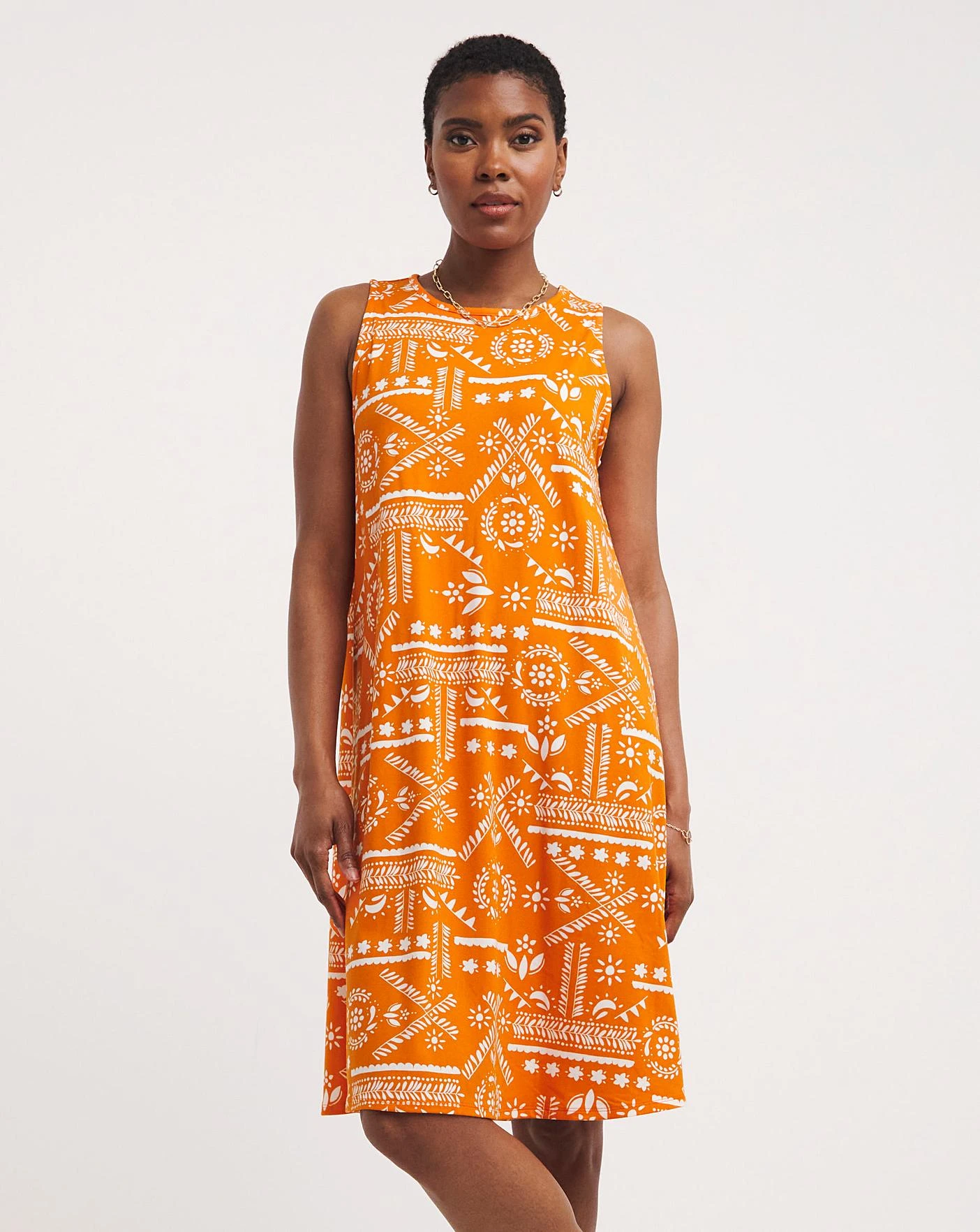 Cut from our best-selling sustainable soft touch jersey, this dress is the ultimate comfort piece for day-to-day use. Designed in our classic swing shape, this sleeveless swing dress is a core holiday essential. In our short length and in a regular fit.