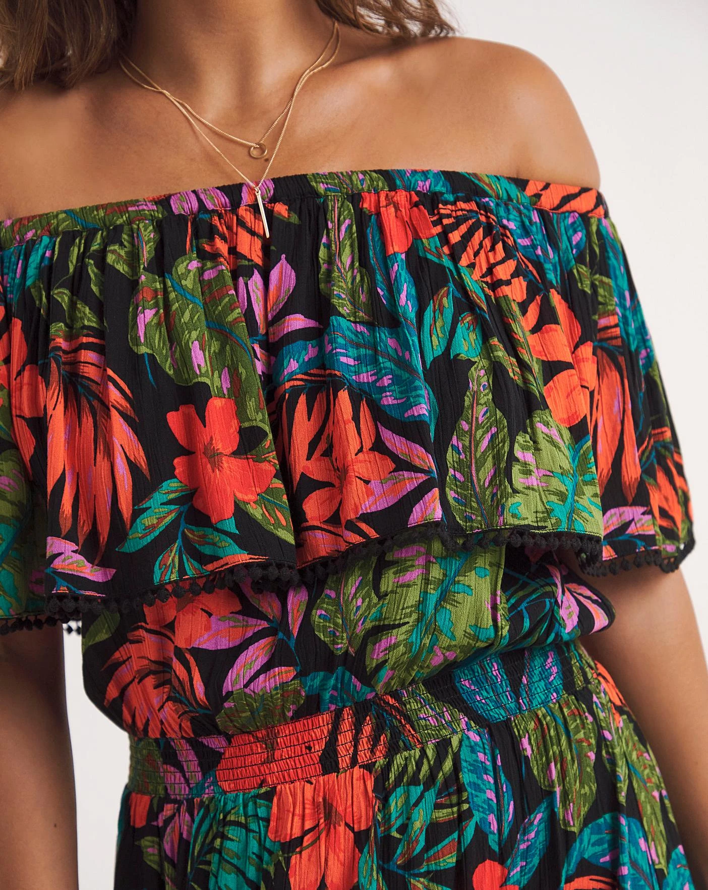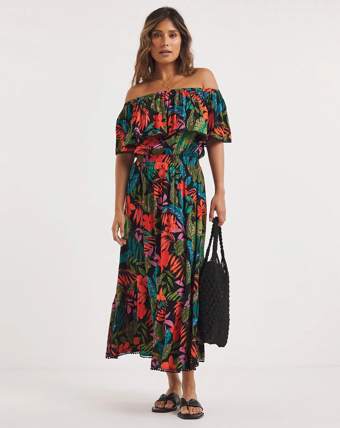 This simple but stylish maxi Bardot beach dress is the perfect cover up to take you from beach to bar this season ! Featuring an elasticated waist to show off your figure, this savvy space saver is a suitcase must have. Length 127cm/50in.