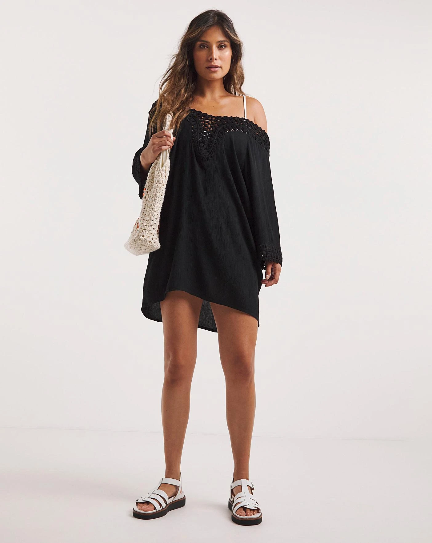 New for this season, our mini beachdress with crochet detail. Length 85cm/33in.