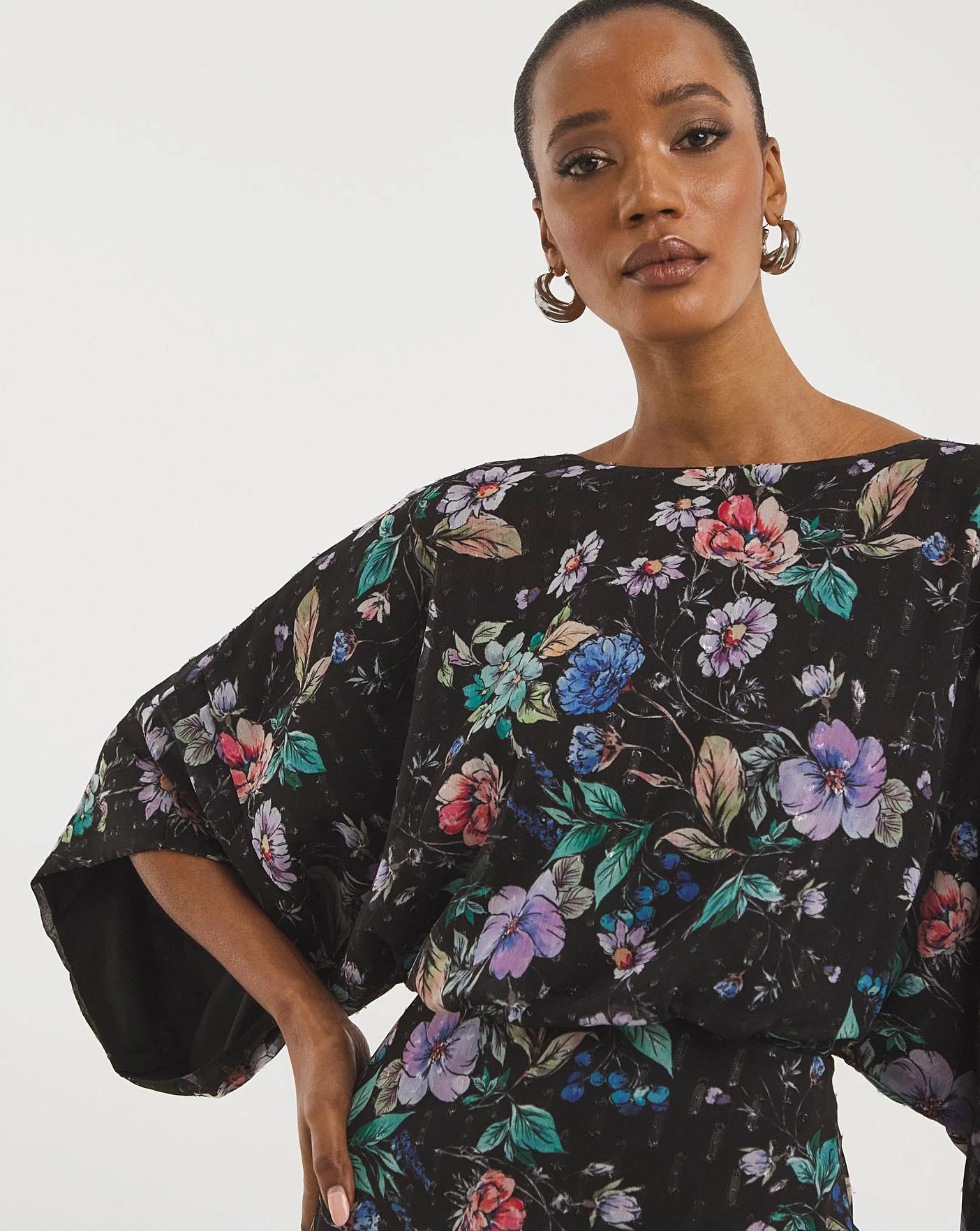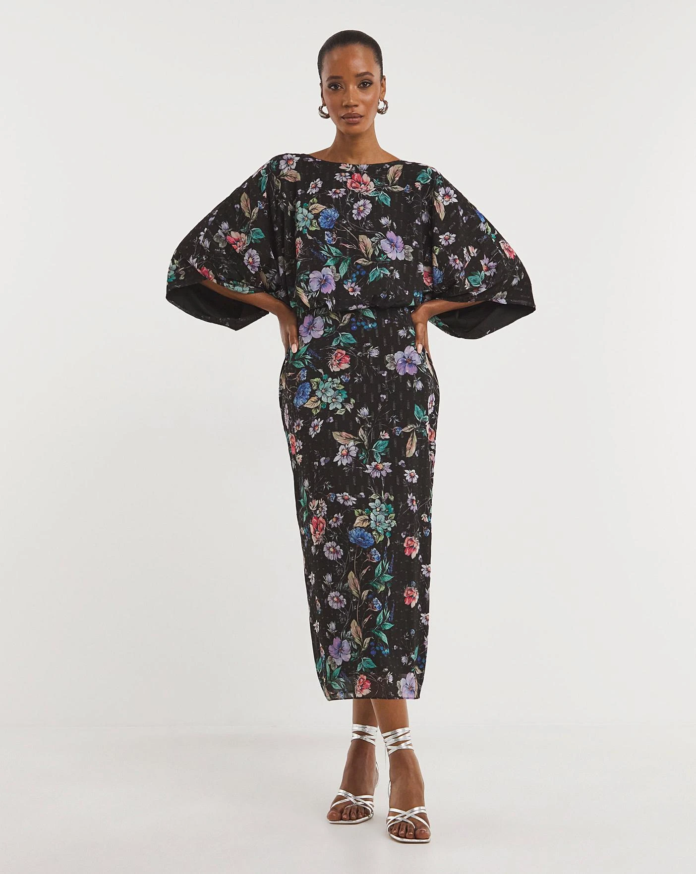 This gorgeous floral printed Joanna Hope dress is a perfect option for your upcoming occasion. Featuring batwing sleeves and a flattering blouson bodice. Style with a classic court heel and matching bag.