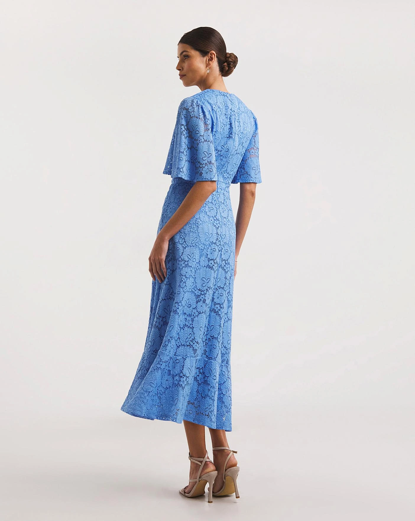 Designed from intricate stretch lace, this beautiful Joanna Hope lace midaxi dress ensures comfort and style throughout the day. Featuring delicate angel sleeves, the dress is cut to a modern fit and flare shape. Suitable for all your up coming occasions, our lace dress is fully lined throughout.