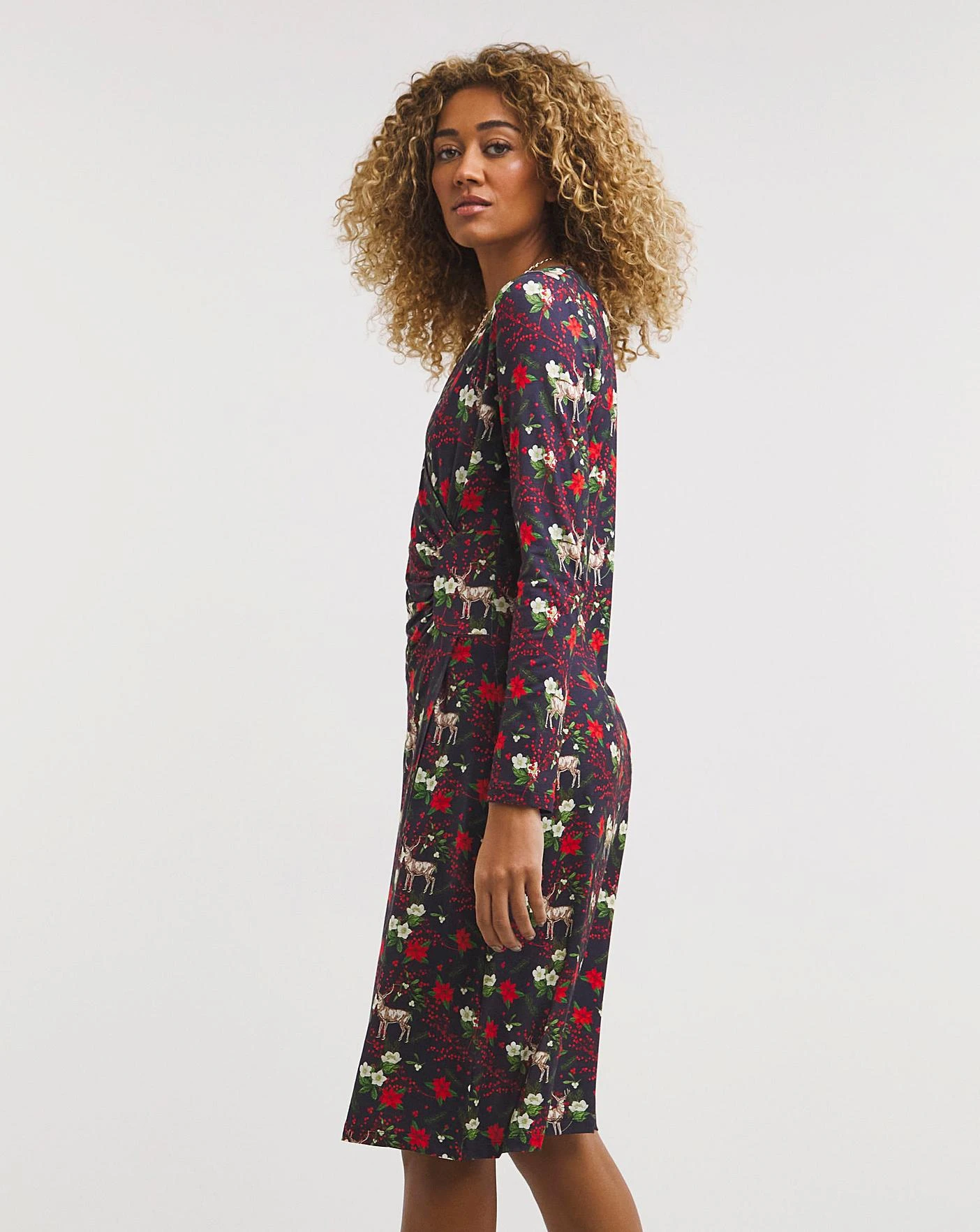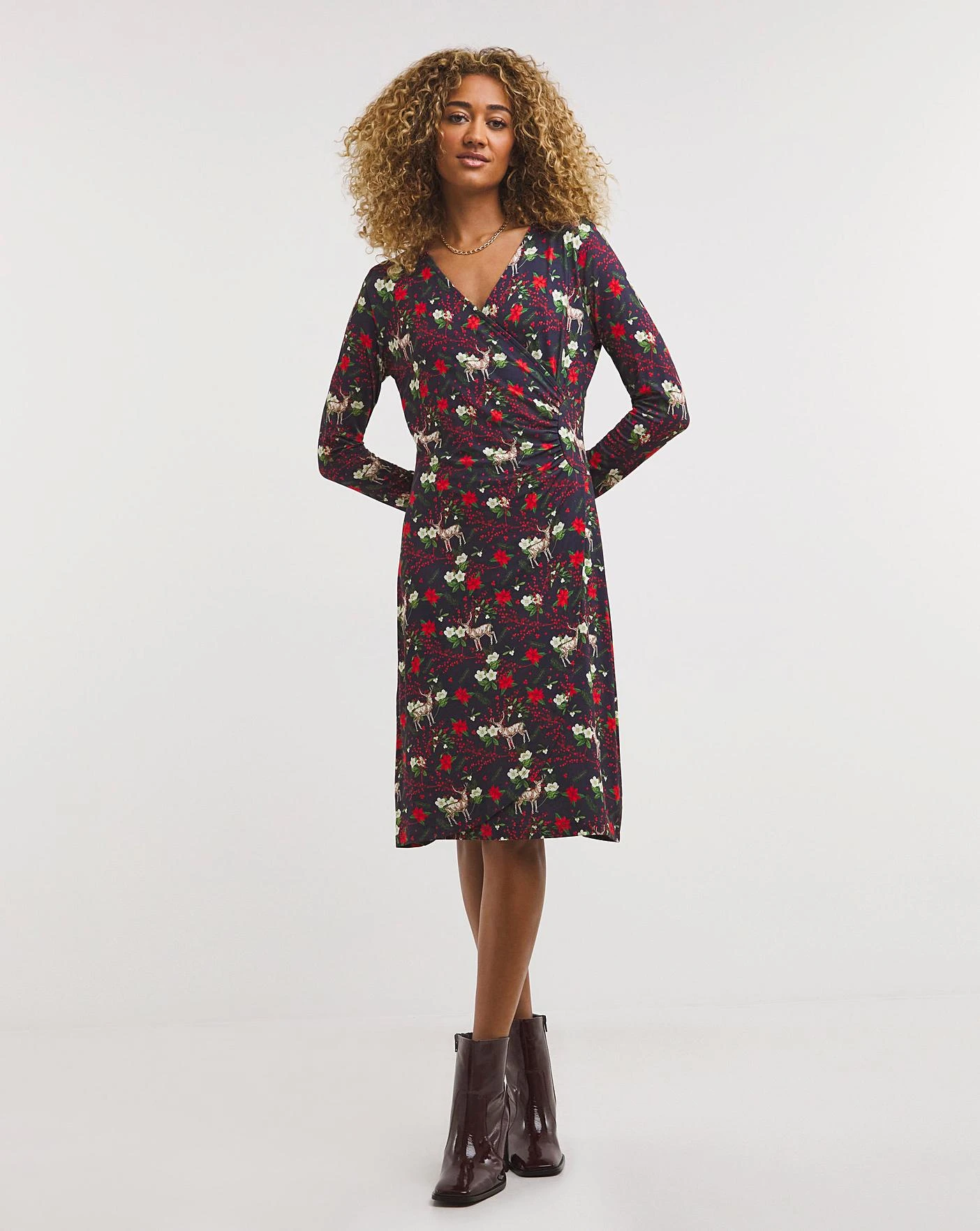 With this adorable all over eindeer print dress, you’ll be able to have a little festive fun with your style. This reindeer dress features a flattering gathering and a chic wrap over style to help you feel ultra cool and cosy. Looking for the best dress to wear on Christmas morning? We think you’ve found it.