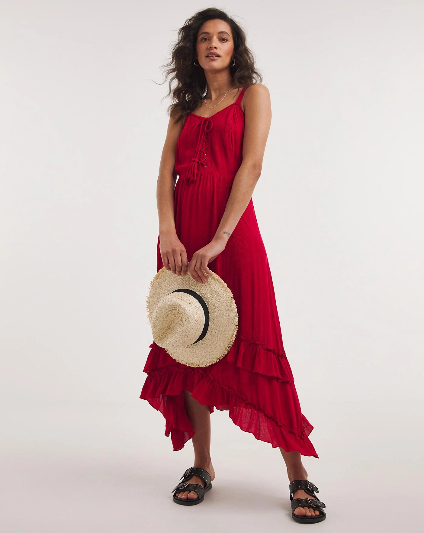 This enchanting dress really does tick all the boxes with its lace up detailing and stunning hem, it will be loved all summer long.