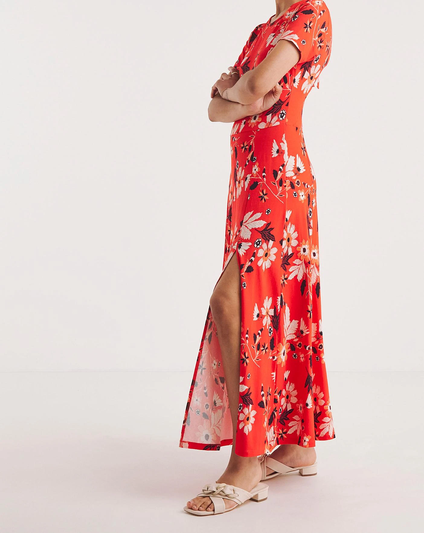 Add some bold summery vibes to your wardrobe with this stunning midaxi dress. In a brilliant, rich colour with a fabulous, floaty skirt, it creates a glam look that you’ll love to flaunt. Finished with gorgeous, subtle details – from the cut out on the back, to the front hem split – this sophisticated dress has everything it needs to make this your favourite style of the season.