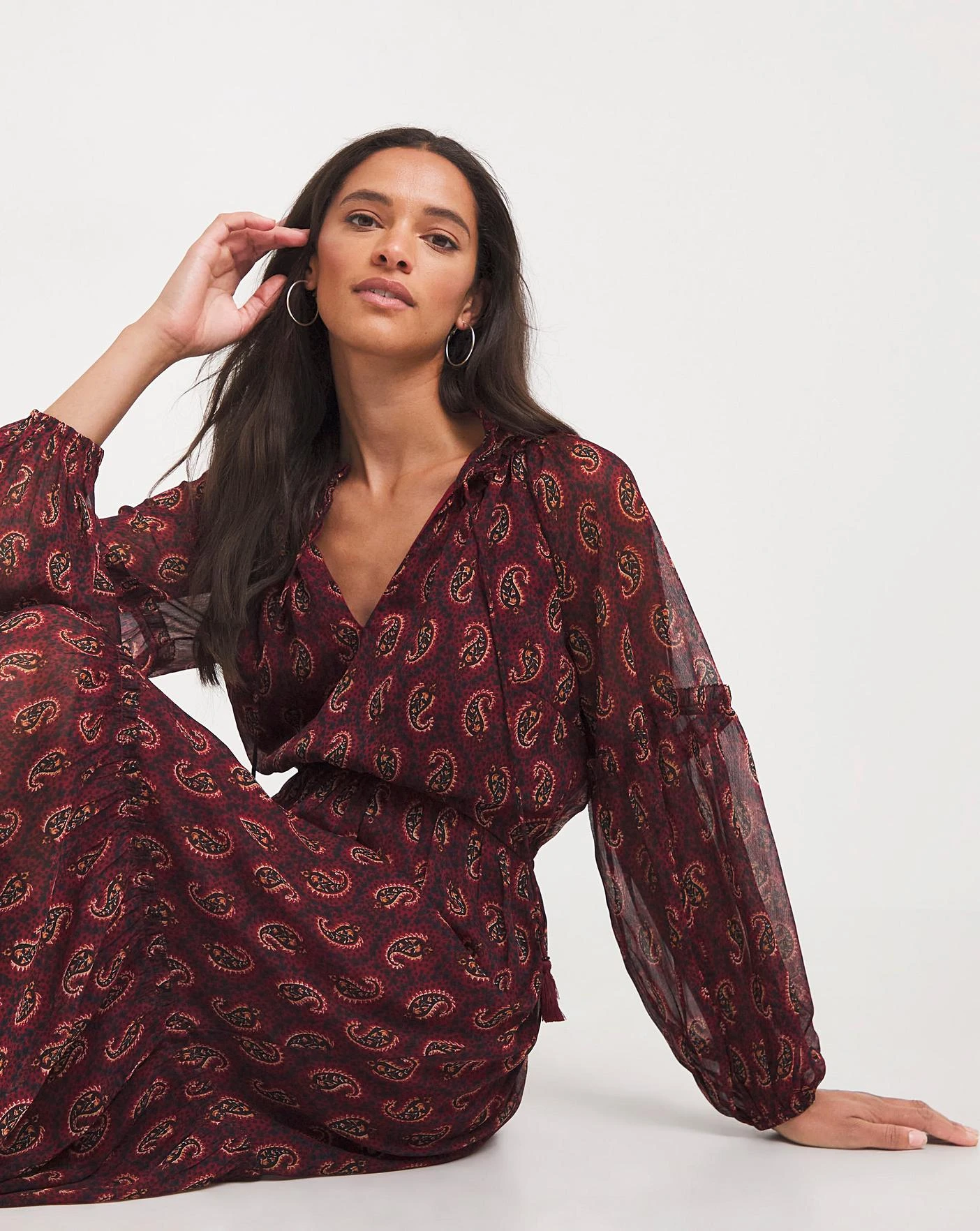 This pailsey dress is the perfect addition to your wardrobe! This versatile piece can be worn in the autumn with trainers and a cute bag or in the winter with tights, chunky boots and a longline jacket. To be dressed up or down, the possibilities are endless!