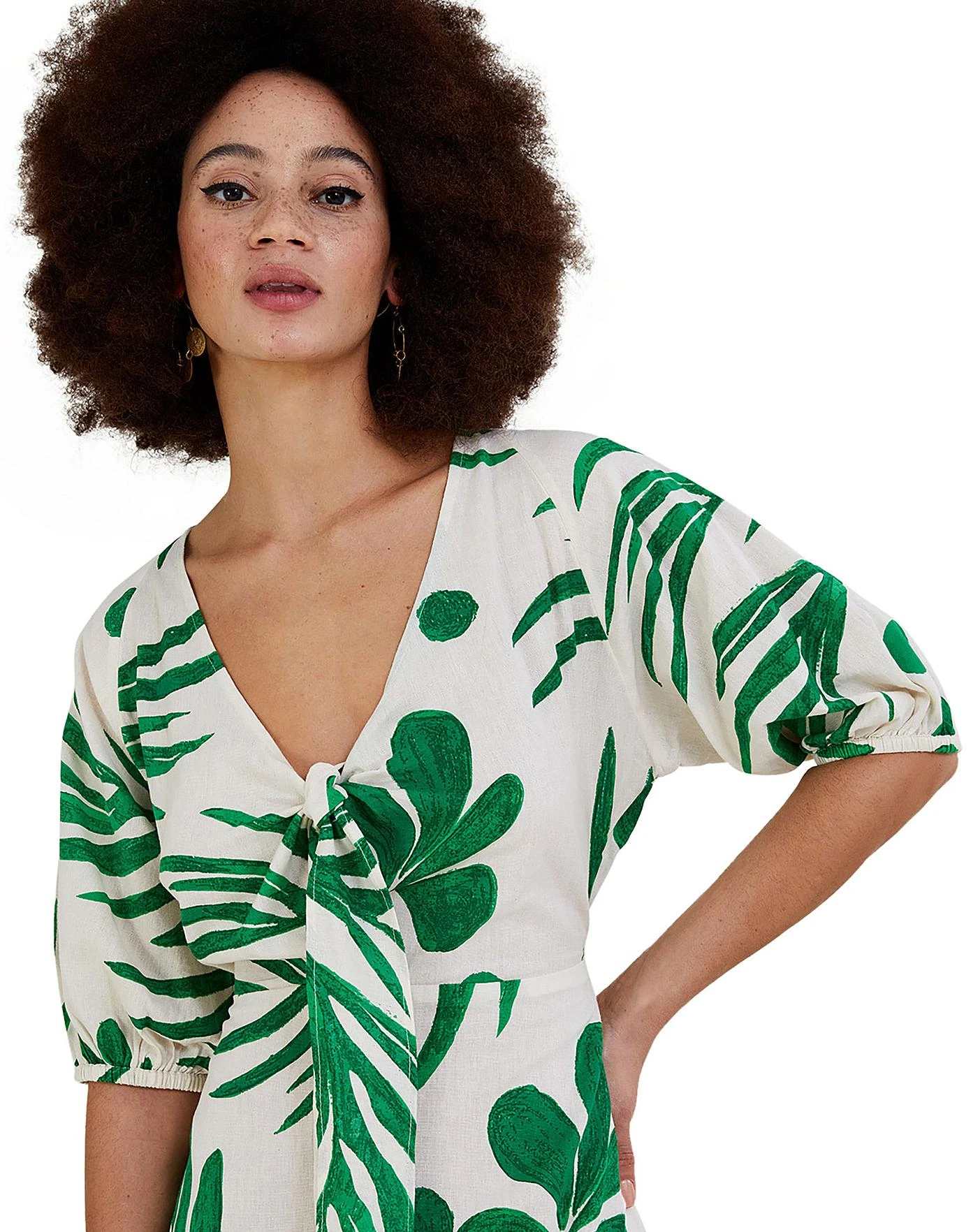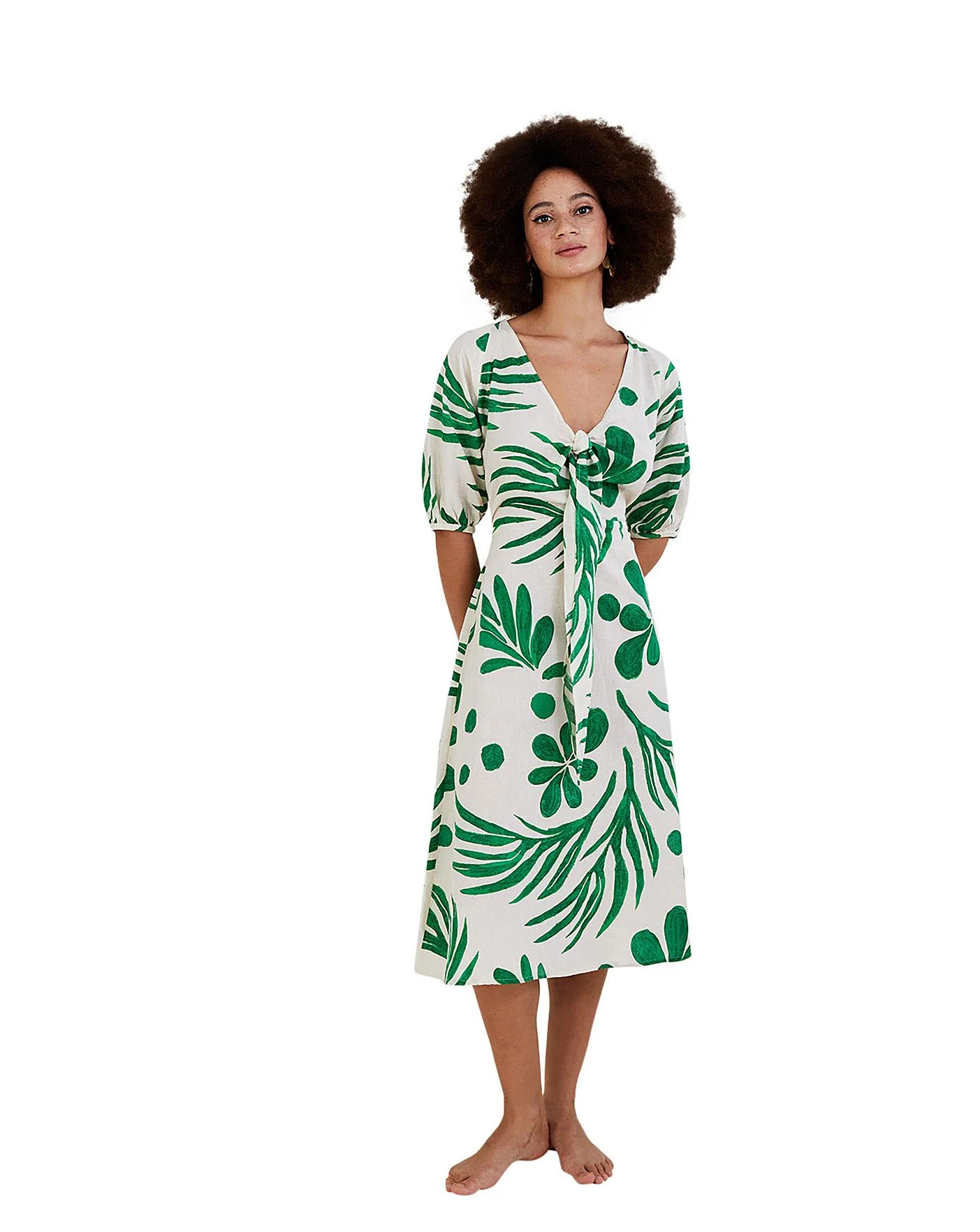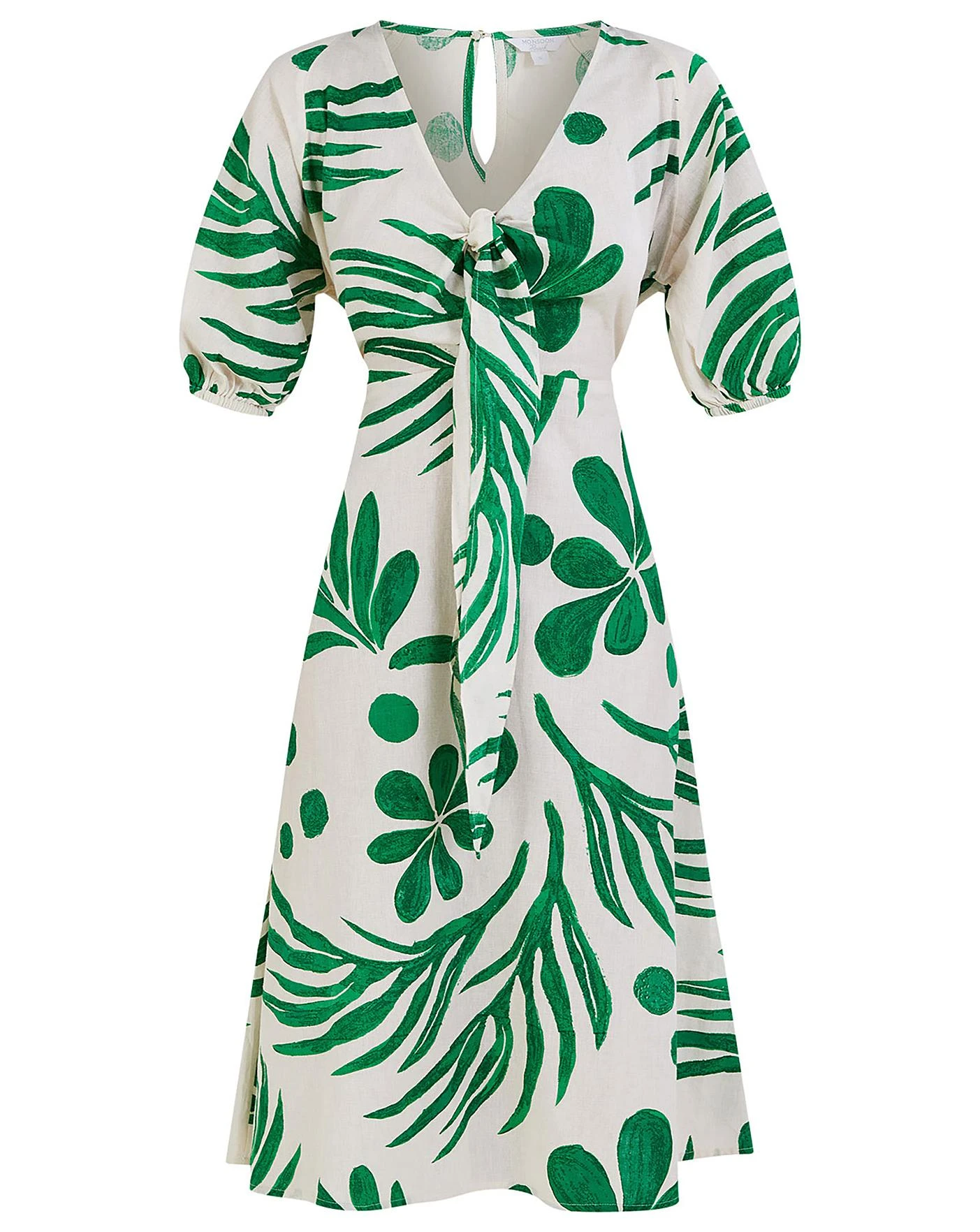 - Monsoon Abstract Palm Tie Midi Dress