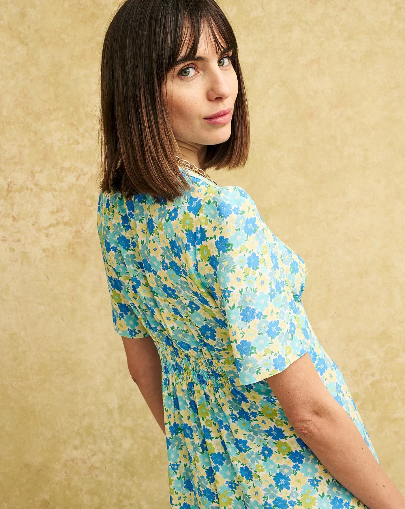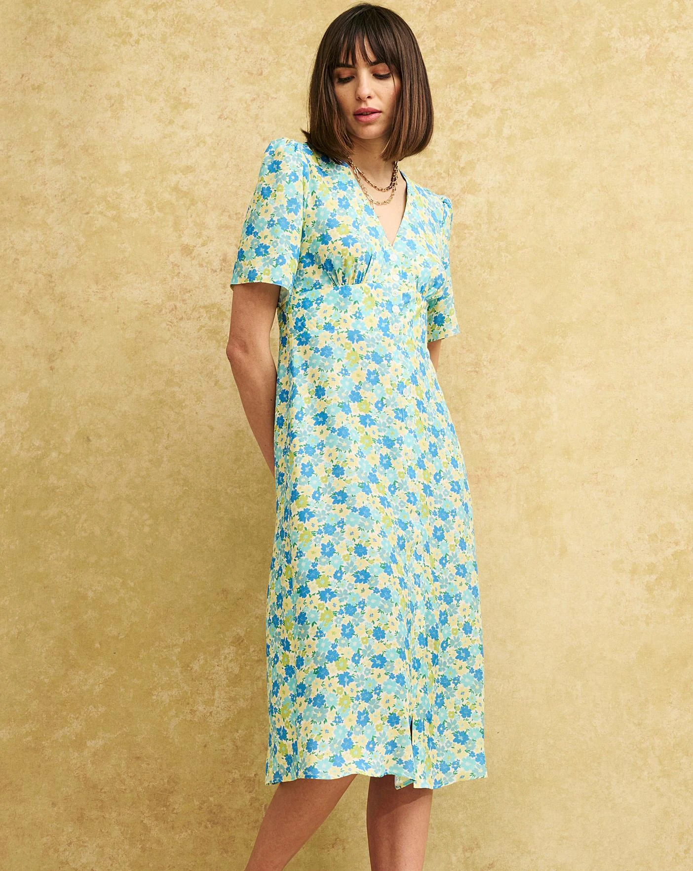 Our trophy style in a soft marigold print. Alexa is all about the vintage inspired details, from the timeless tea dress cut to the delicate covered buttons. This one is made from responsible viscose that drapes like a dream. We’ve also added a subtle shirred back to gently pull you in at the waist. Style yours with white trainers.