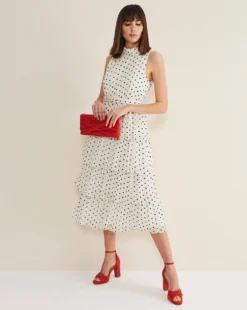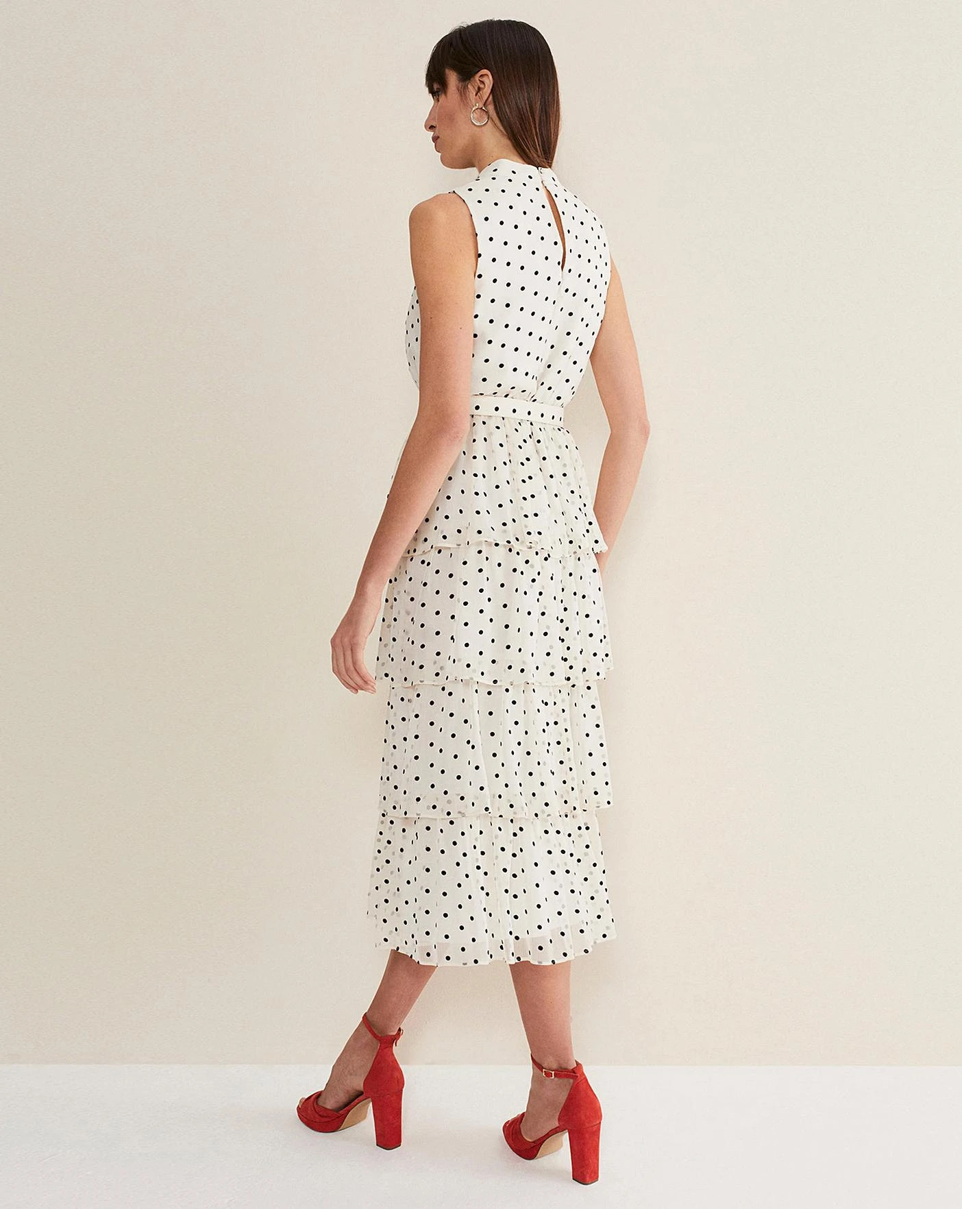 The perfect occasion dress that will never go out of style. Our Rita dress is designed with head to toe polka dots bd features a fully tiered flowing skirt and complimnetary belt to highlight your figure. Style with heels and a matching clutch bag to your next special event.