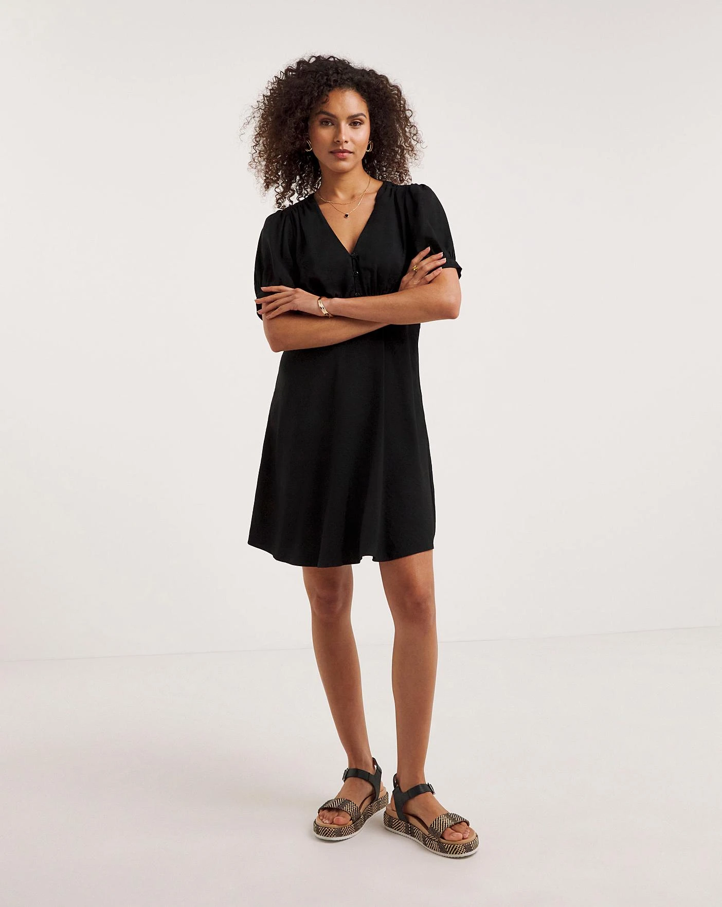 A feminine and stylish piece that is perfect for summer days. Designed with shirring and button detail to create a comfortable fit, while the flloaty skirt and puff sleeve add a chic edge. Made from a viscose blend material, the dress is soft to the touch and breathable, ensuring comfort all day long.