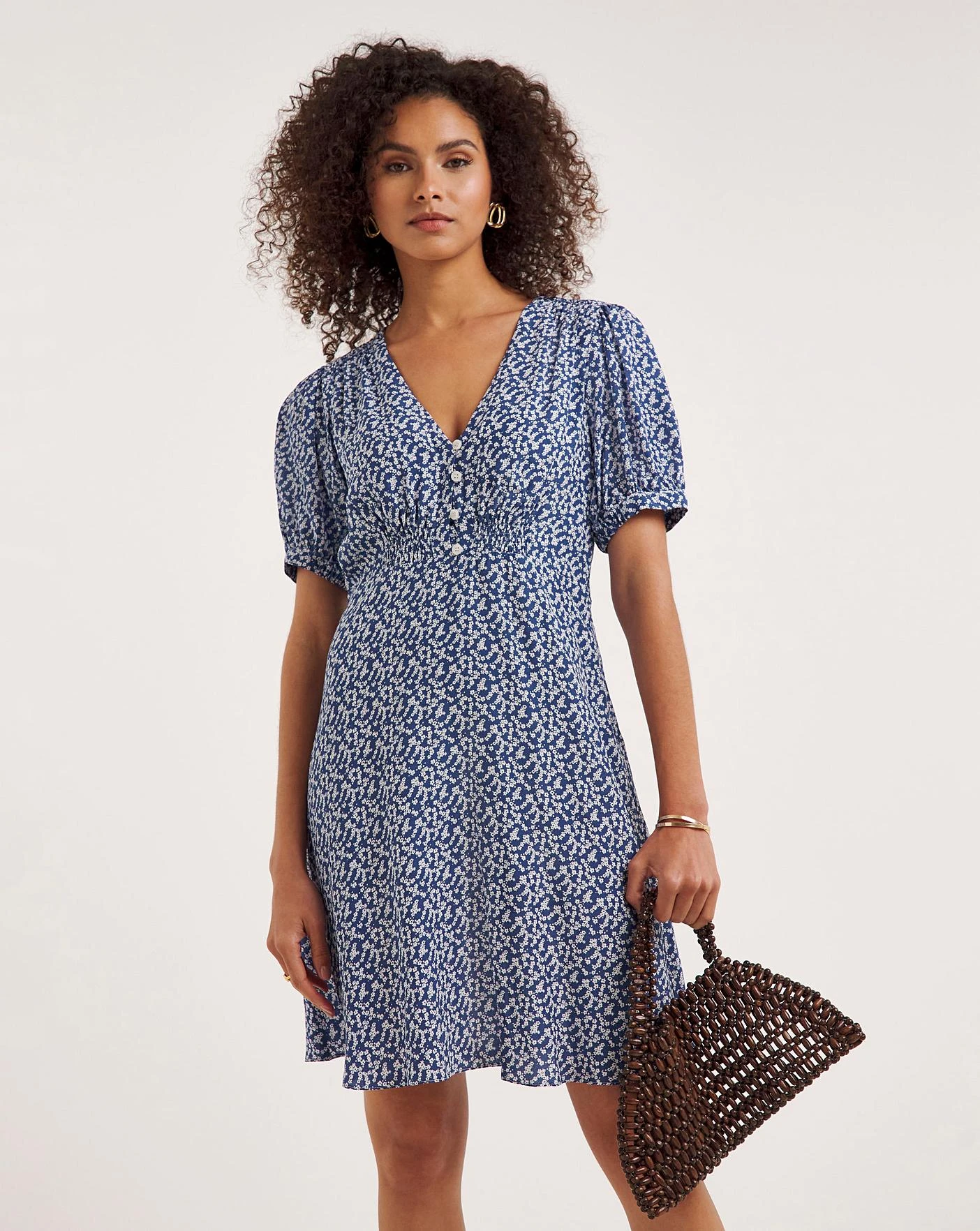 A feminine and stylish piece that is perfect for summer days. Designed with shirring and button detail to create a comfortable fit, while the floaty skirt and puff sleeve add a chic edge. Made from a viscose blend material, the dress is soft to the touch and breathable, ensuring comfort all day long.