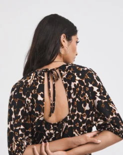 Be the topic of conversation in this floral mono print wrap dress. Featuring an adjustable D-Ring belt to accentuate the waist giving shape to the dress, a shirt collar V-neckline and long sleeves- perfect for the new season.