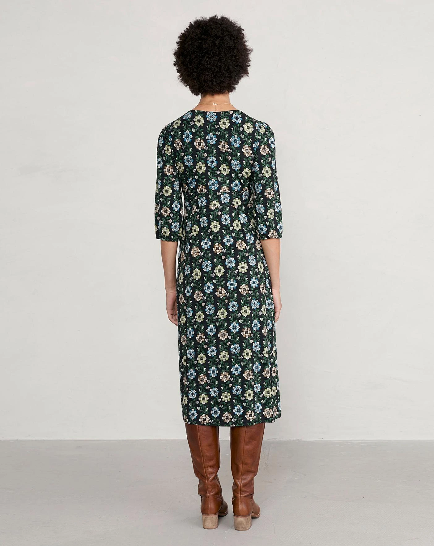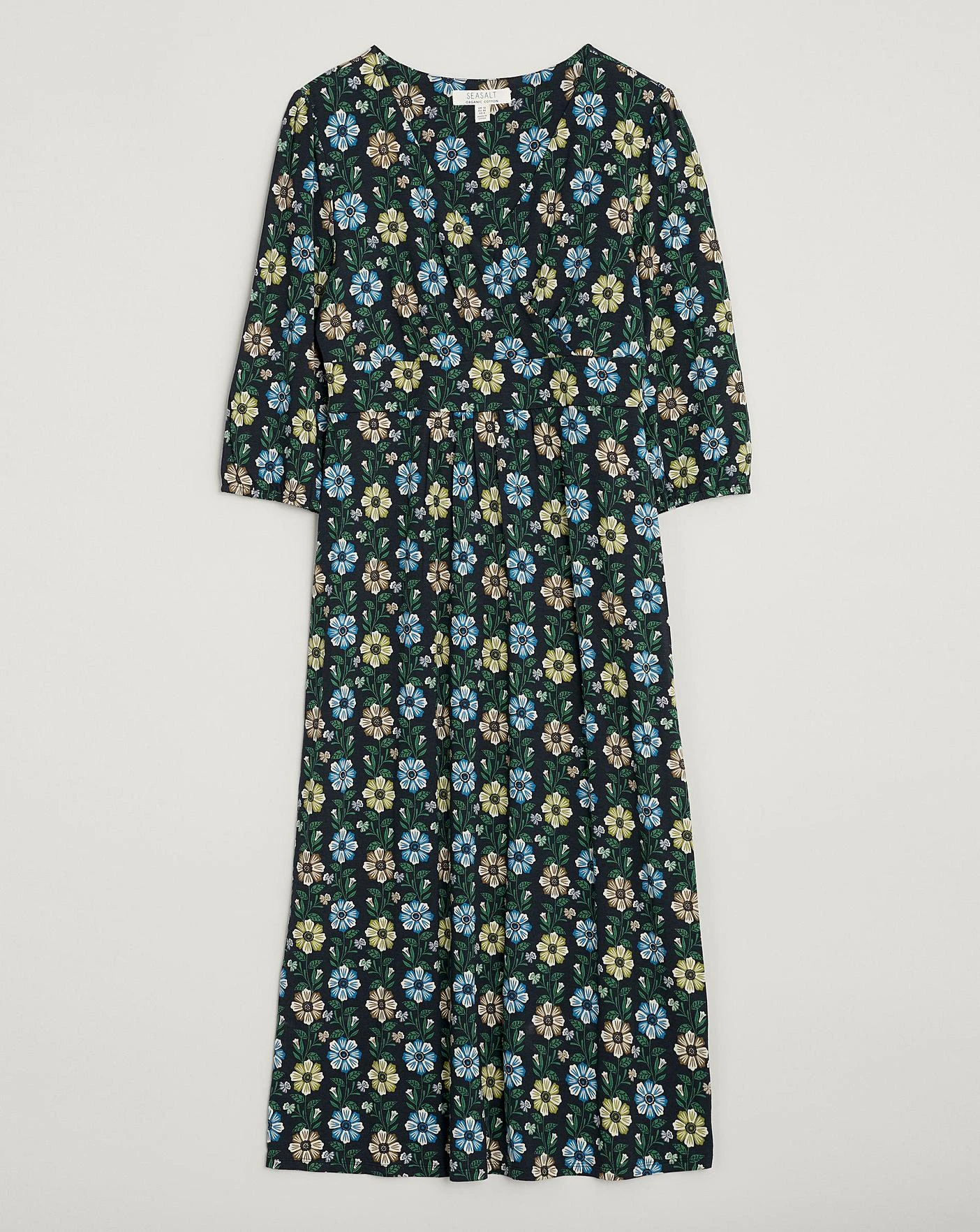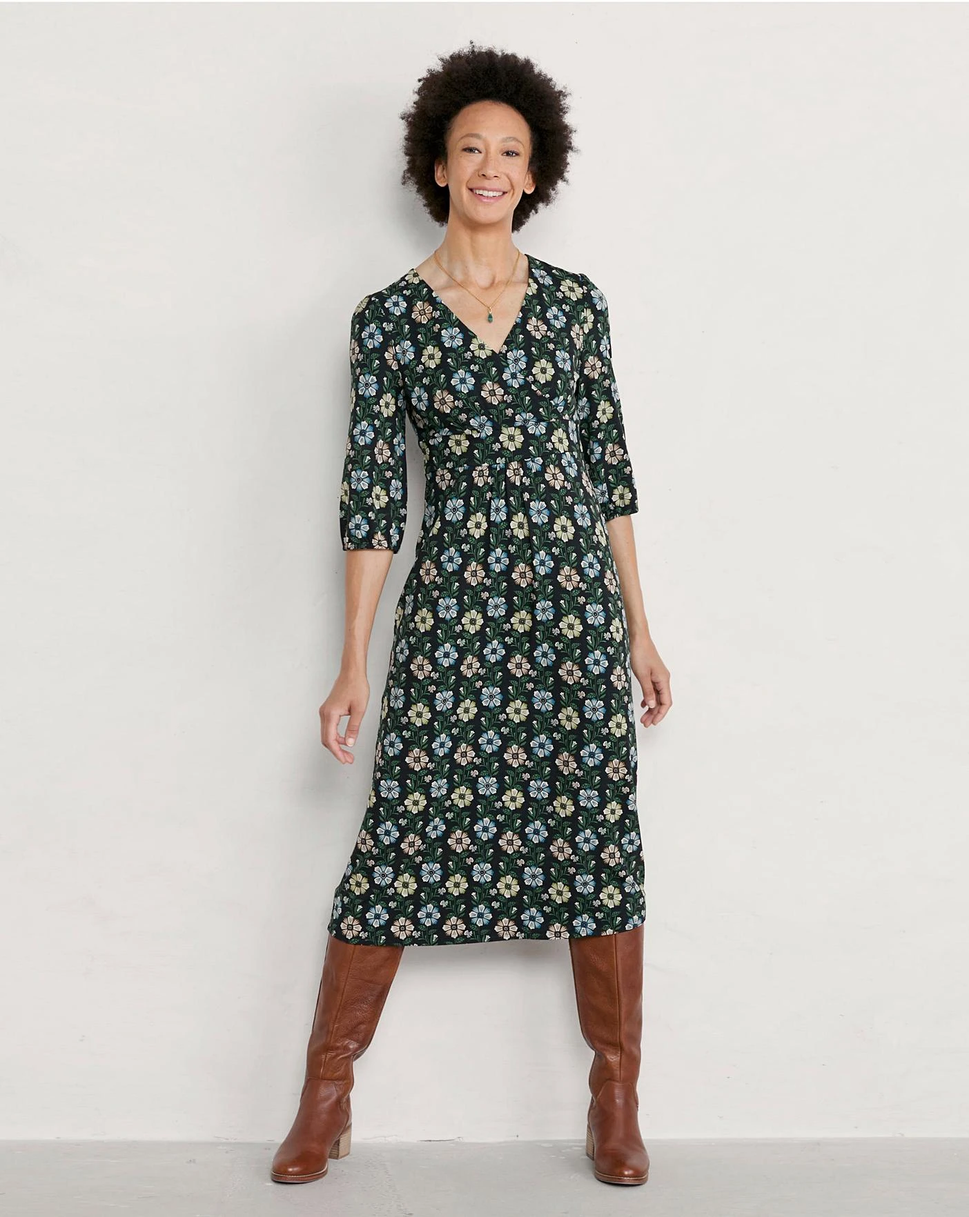 A wrap-effect dress made from soft and breathable bamboo jersey. An underbust panel and pretty, 3/4 length blouson sleeves create a feminine fit.