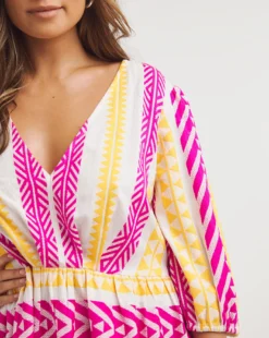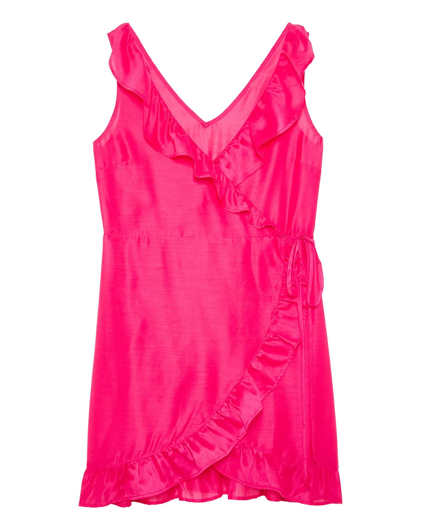 Feel chic in this wrap over beach dress this summer! In a lightweight, sheer, fabric. Featuring a frill neckline and cross over front giving the most flattering silouette. It is the must have staple of the summer!