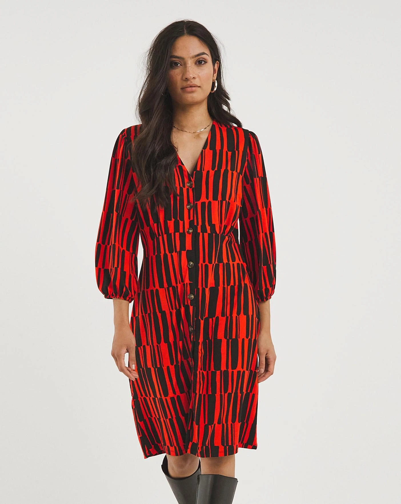 You will love the super soft feel of our best-selling Soft Touch Jersey fabric, consciously sourced from re-cycled materials. Featuring three quarter length sleeves and an elegant v-neckline. Designed in a flattering tea shape this easy versatile dress is a customer favourite and will be your go to throw on, perfect for everyday styling.
