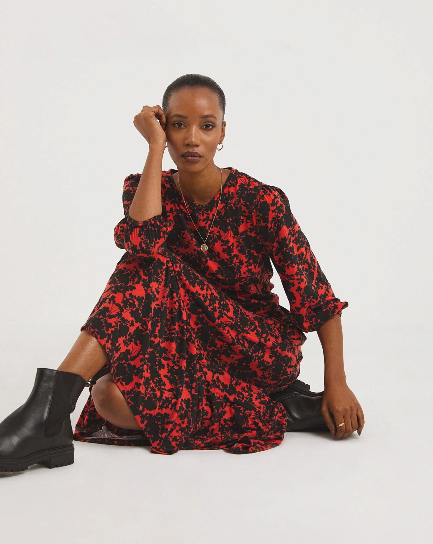 Designed with our popular soft touch fabric, this printed midi smock dress is the perfect day dress for the season.