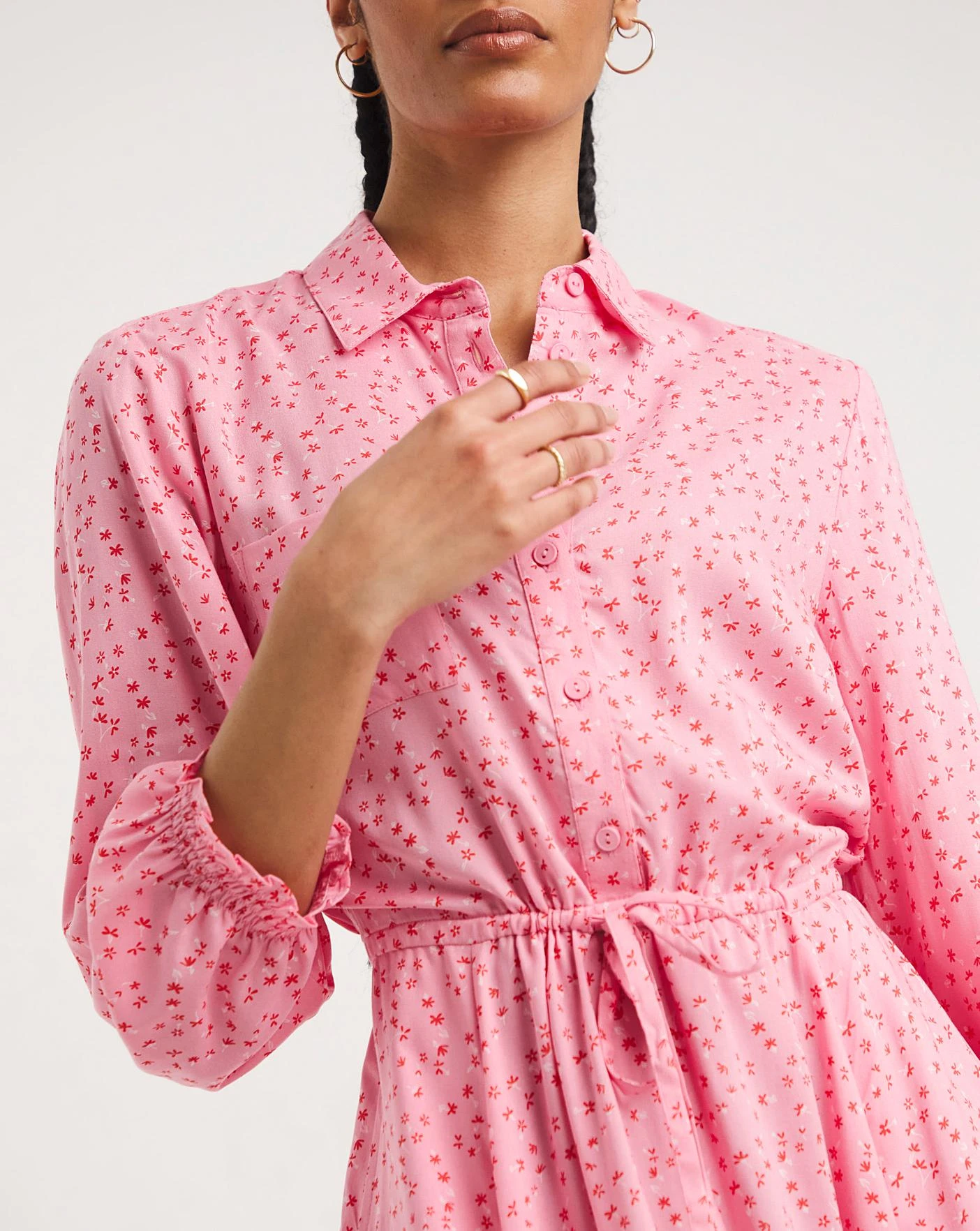 Update your wardrobe with this smart casual Viscose shirt dress. The flattering silhouette features a button placket, drawstring waist and modern asymmetric hem. This easy versatile midi dress is perfect for everyday styling.