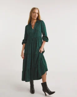 Relaxed, easy and effortlessly chic, trapeze dresses have our full attention in the summertime. This one is decorated with a gorgeous climbing vine design and varied green hues.